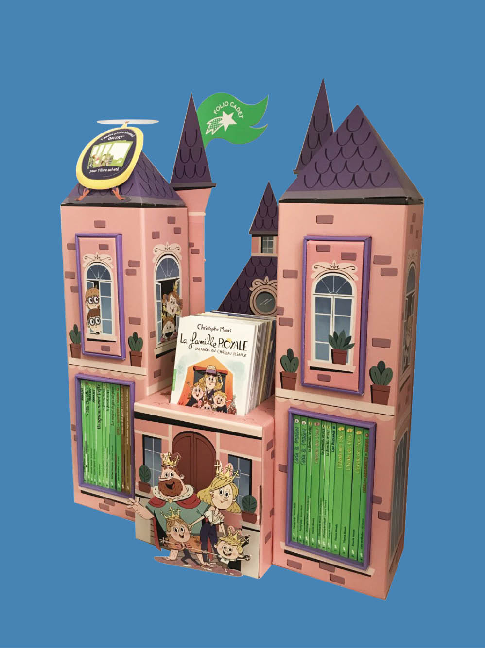 Conception graphique, commande et suivi d'illustrations pour la PLV de la collection " Folio Cadet". Cette PLV reproduit le château de la "Famille Royale", série illustrée par Aurore Damant.