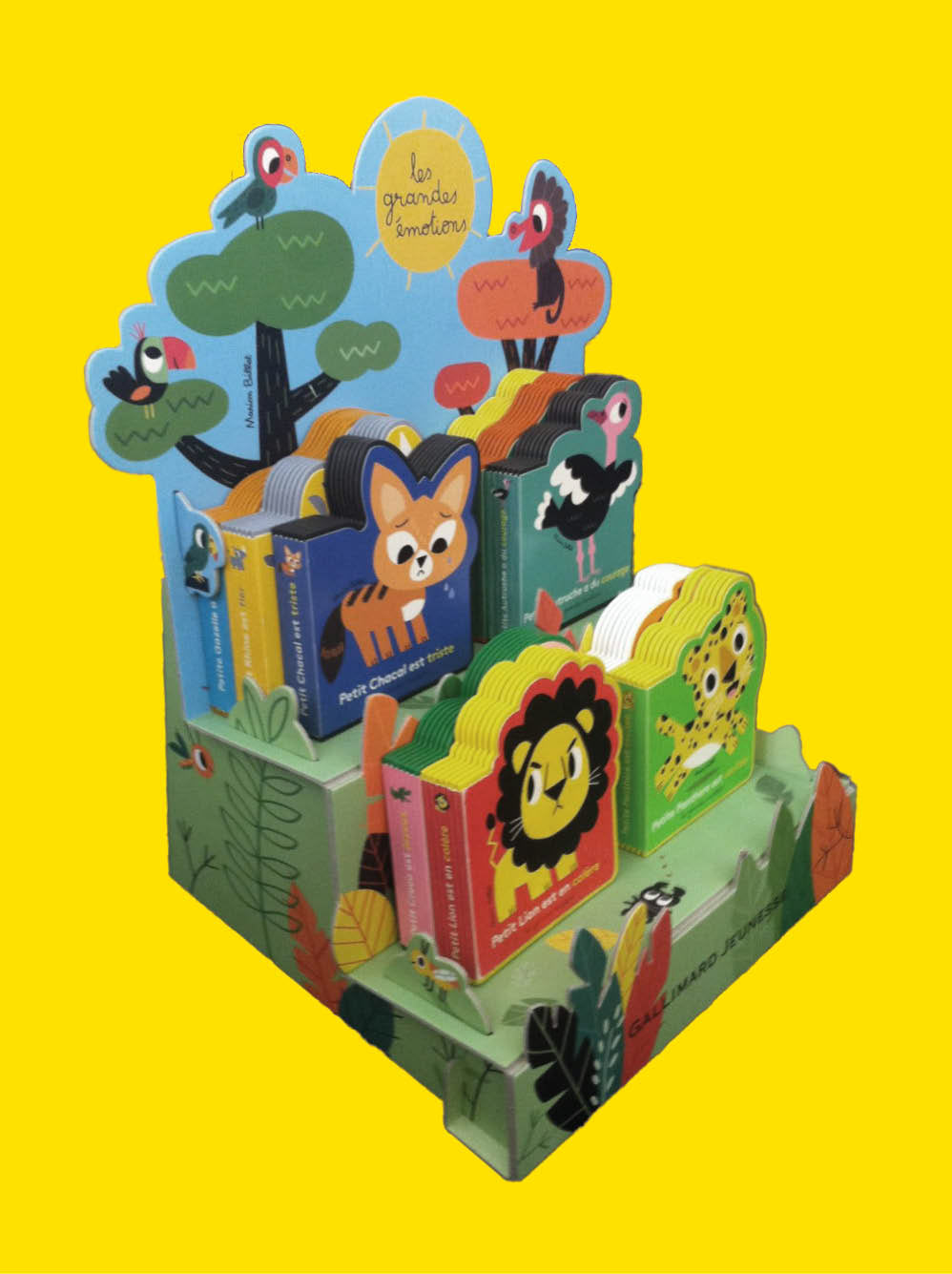Conception graphique et exécution de la PLV de comptoir pour la collection "les grandes émotions", illustrée par Marion Billet. Commande et suivi d'illustrations.
